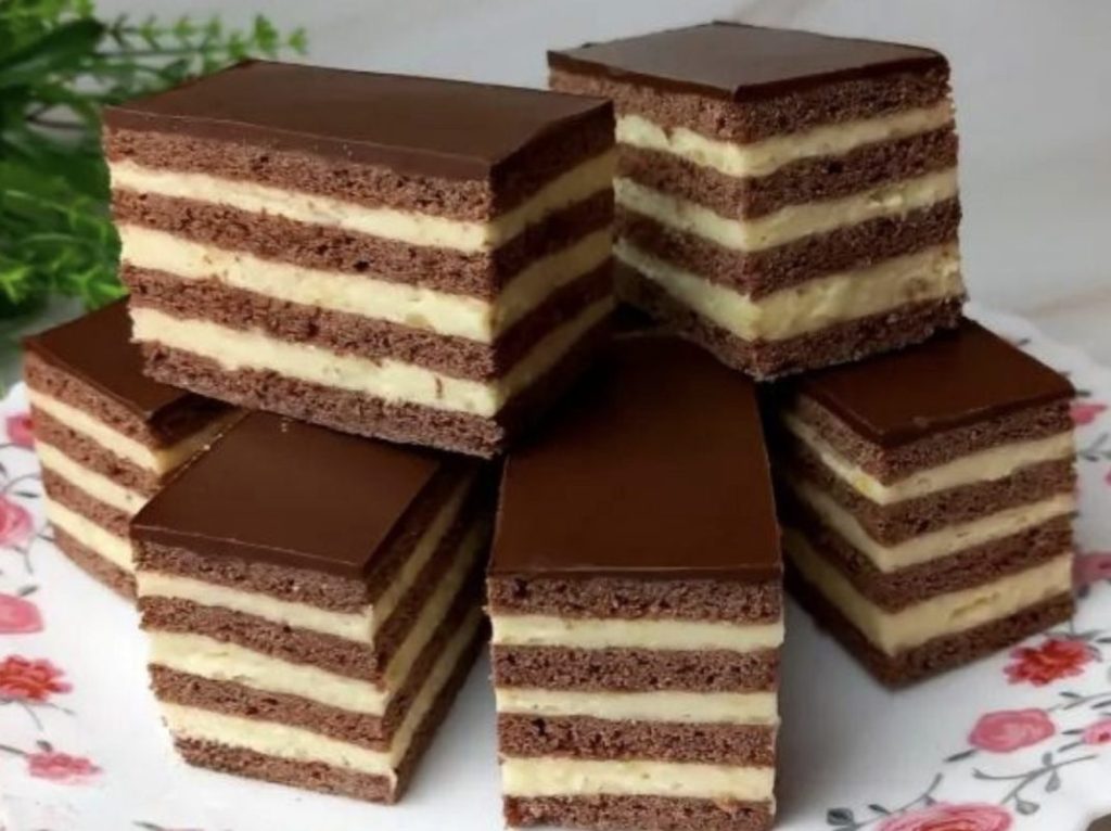 Aceasta reteta are la baza un blat subtire de cacao, o crema bogata de vanilie vegetala si o glazura lucioasa din ciocolata