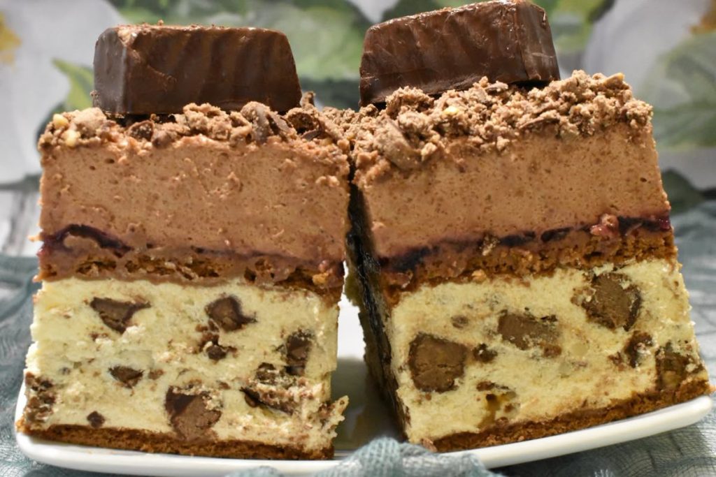 Un desert bogat, stratificat, cu texturi superbe — cremos, usor crocant, usor acrisor de la gem si plin de aroma de ciocolata si alune. O prajitura fara coacere care se face repede si dispare si mai repede!