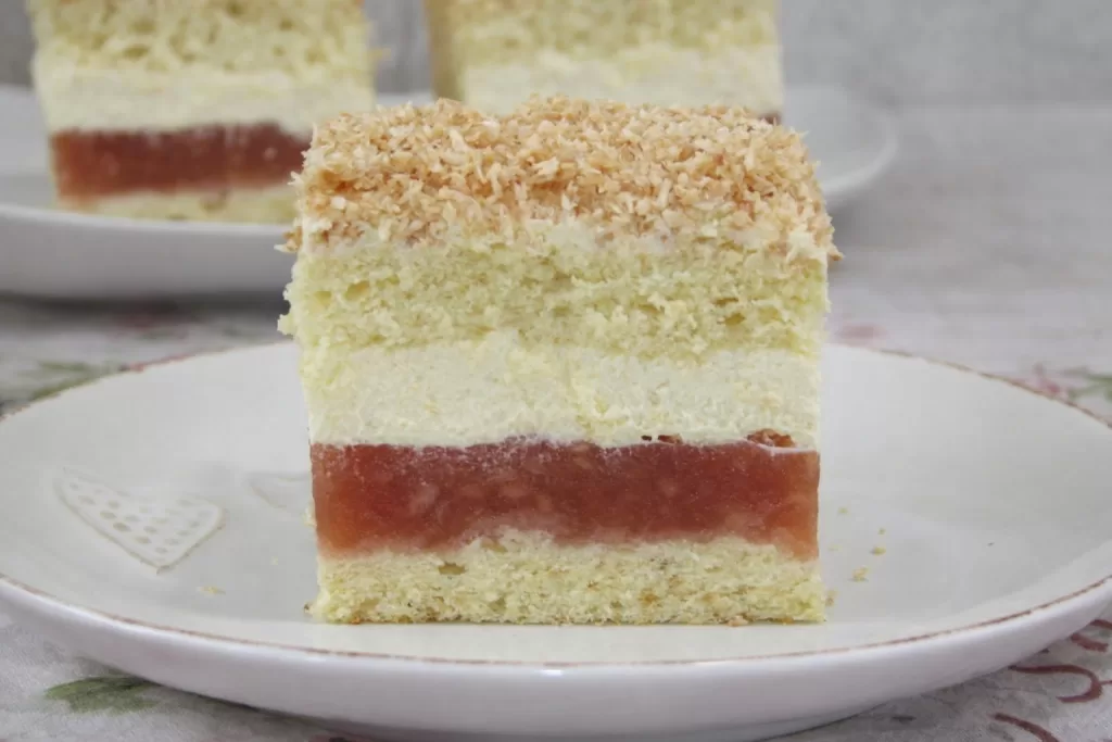 Un desert delicat, echilibrat si extrem de apreciat: blat aerat, strat generos de mere si crema fina de budinca, finalizat cu cocos crocant. Dispare de pe masa intr-o clipa!