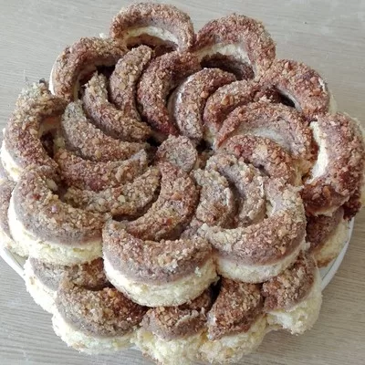 Intinde crema peste blatul pufos si asaza deasupra foaia cu nuci, cu partea cu nuca grosiera in sus. - Formare